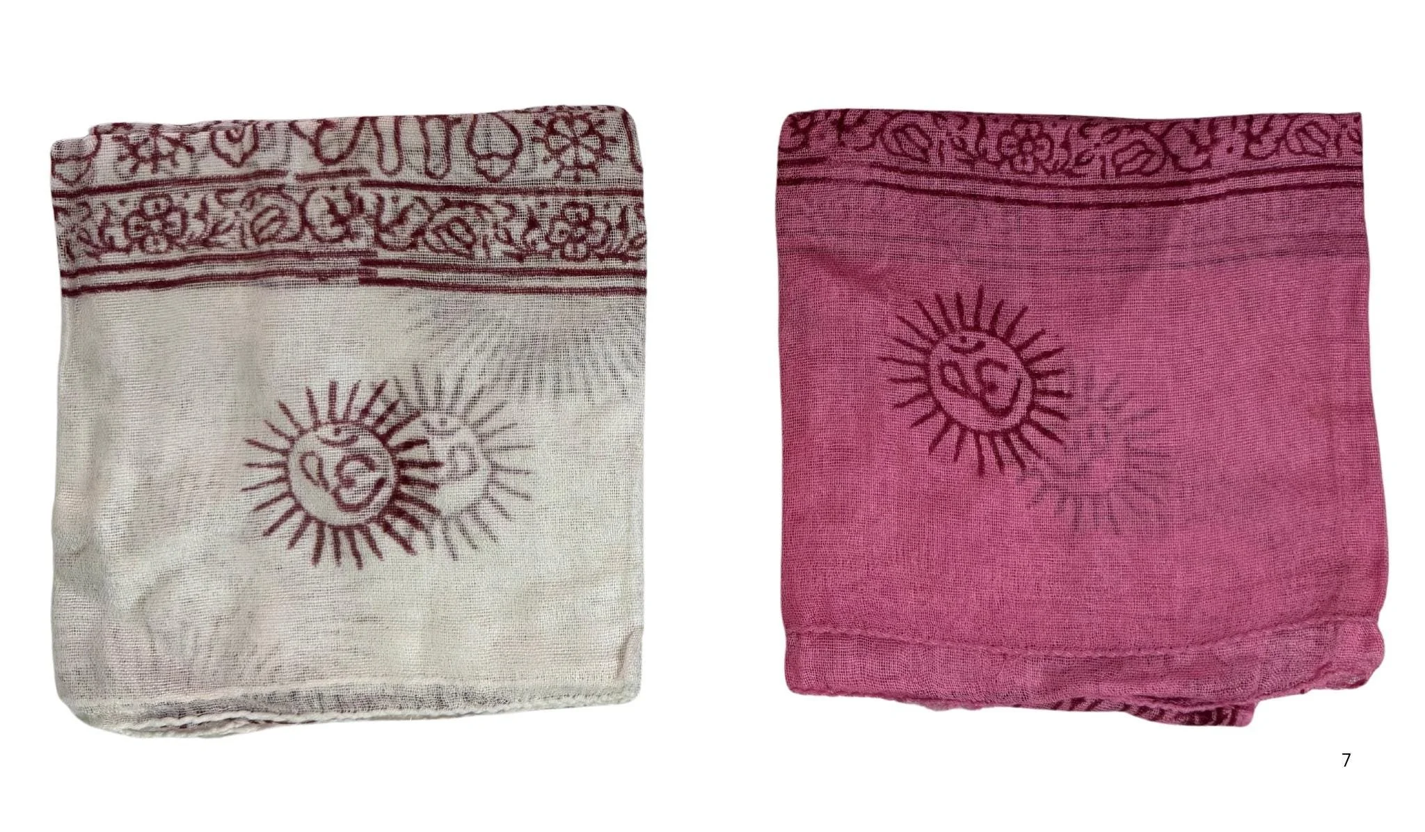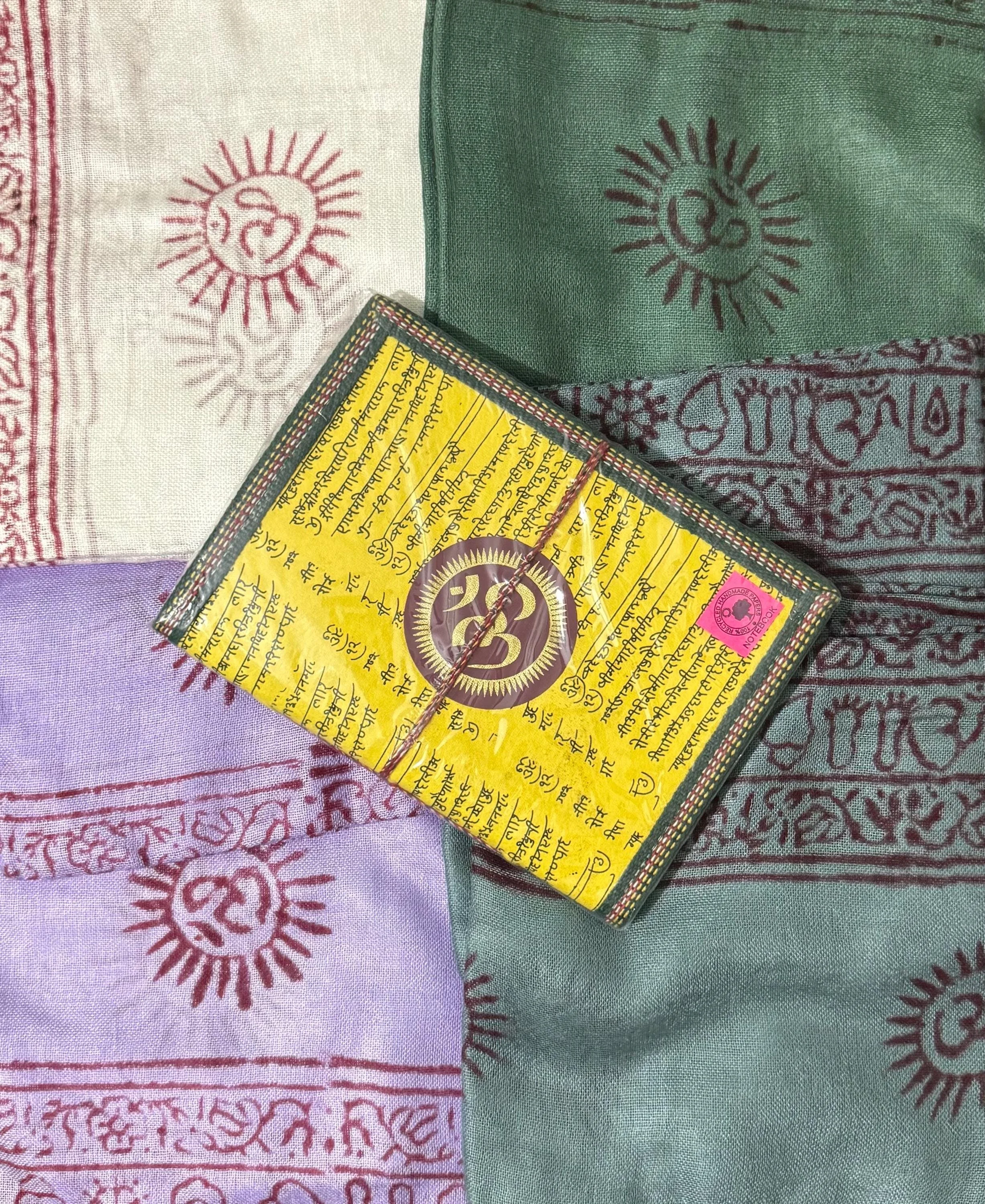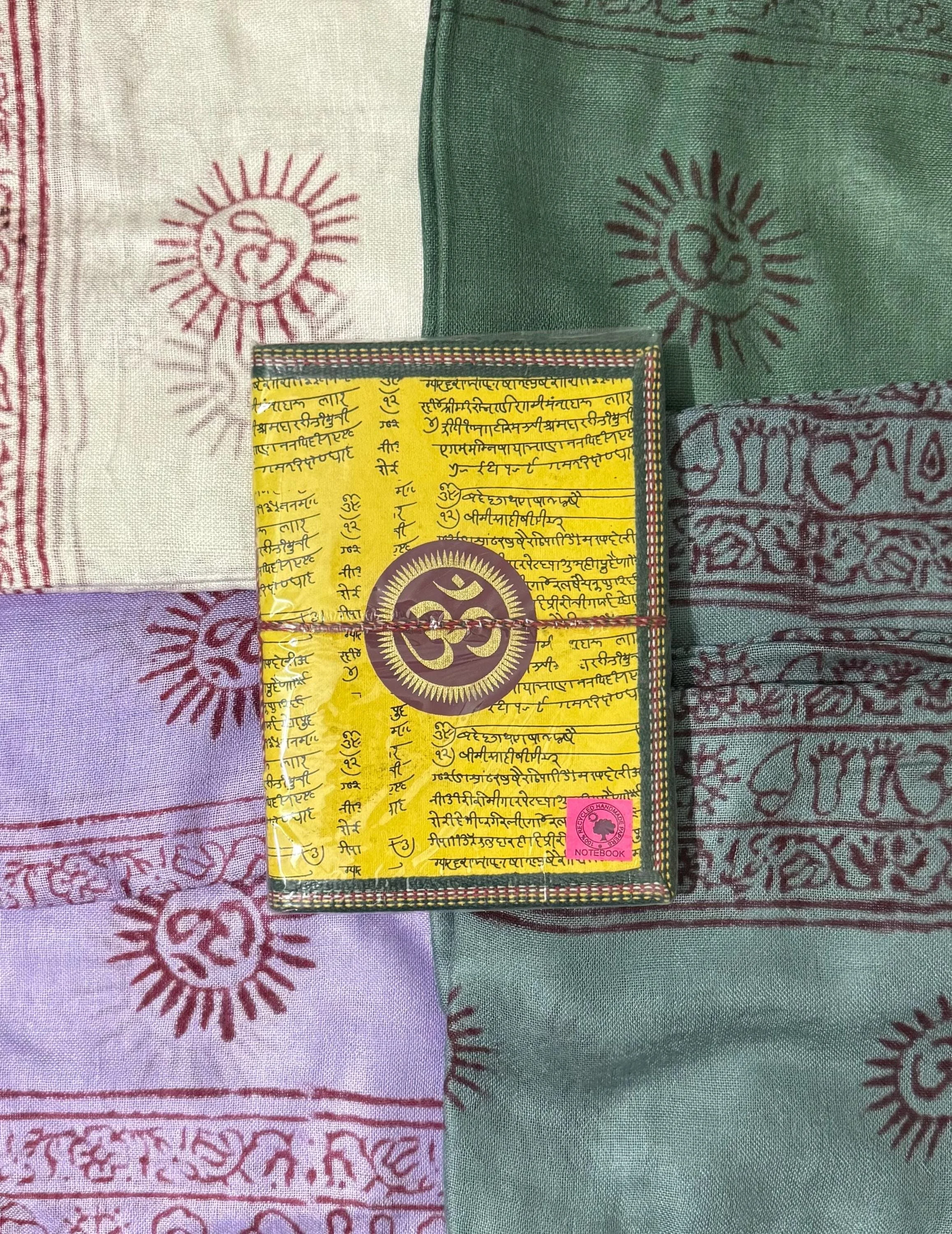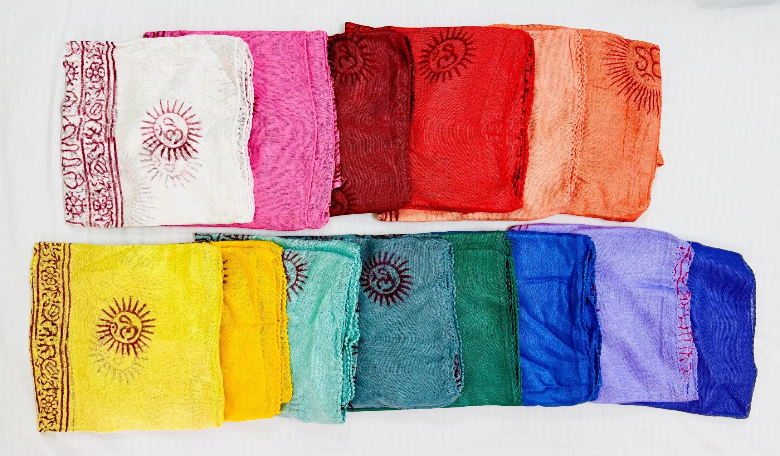 Om Shawl: Lightweight Cotton, Sacred Symbol Block Print, Bright Colors.