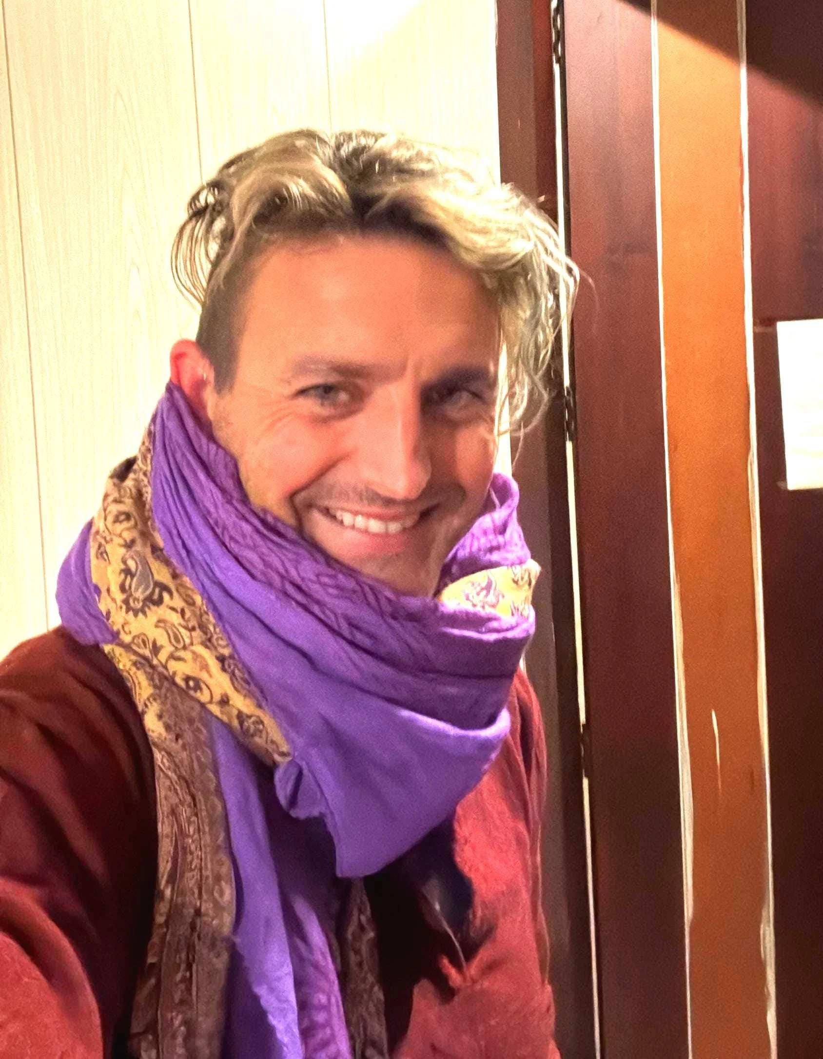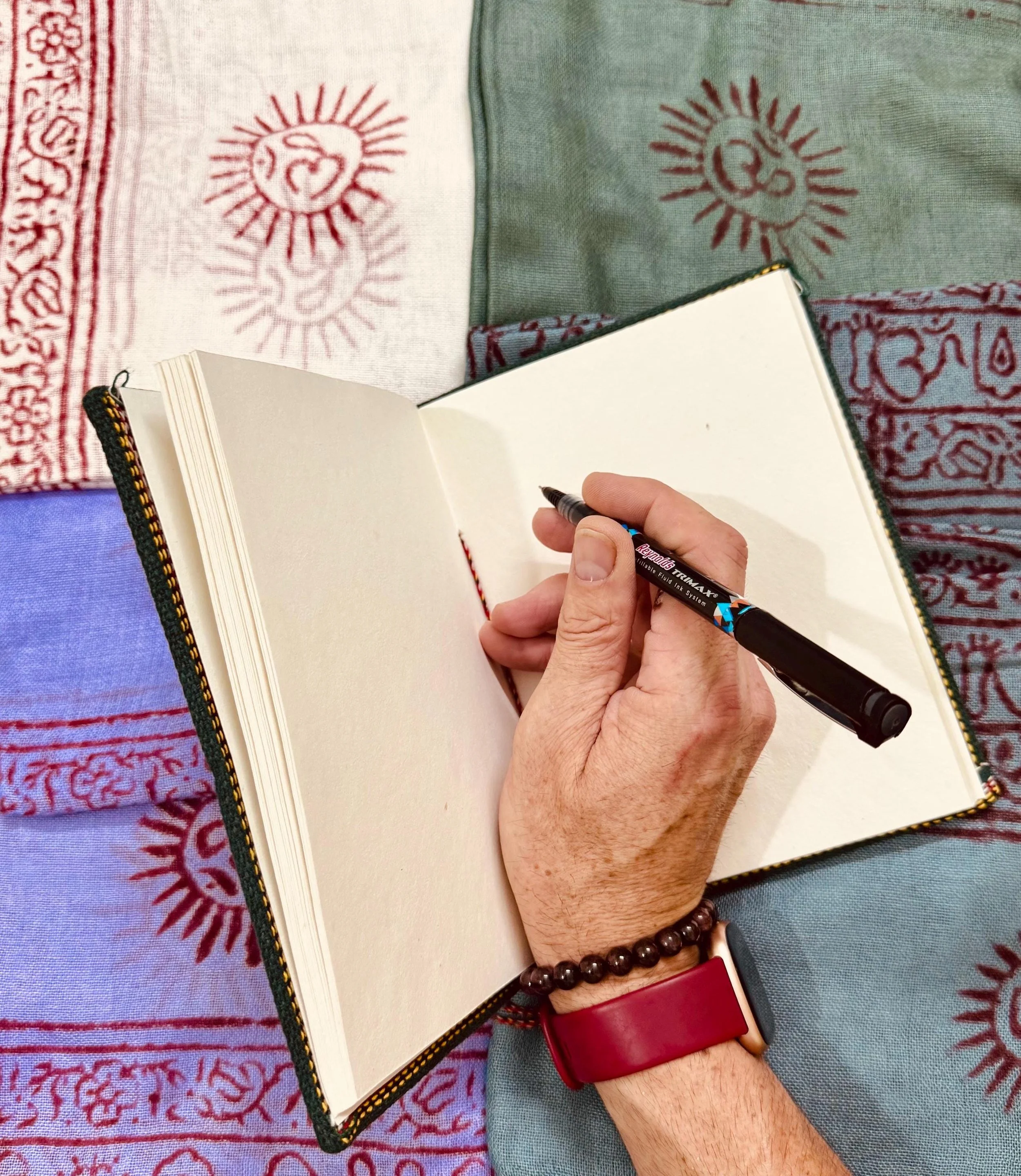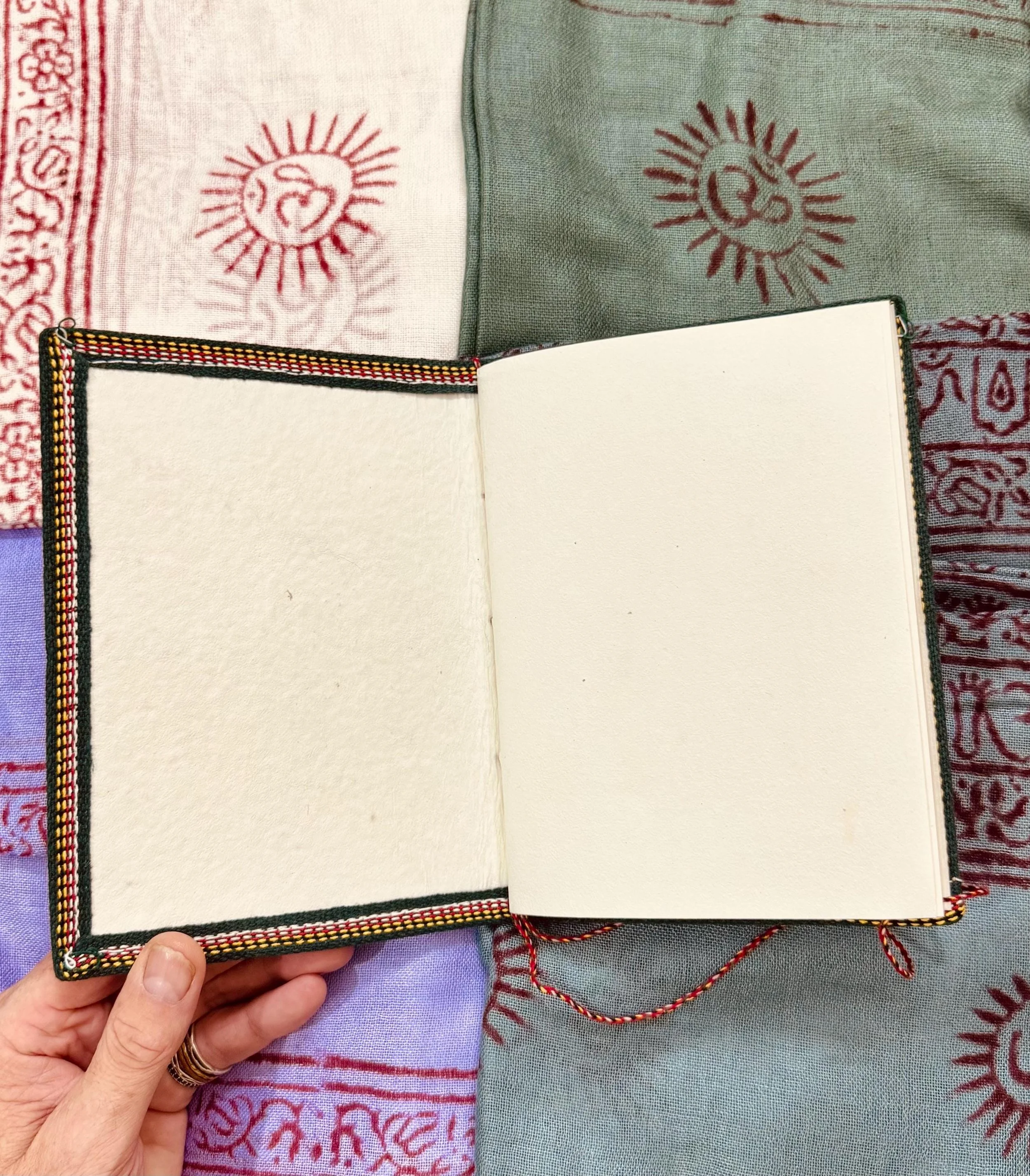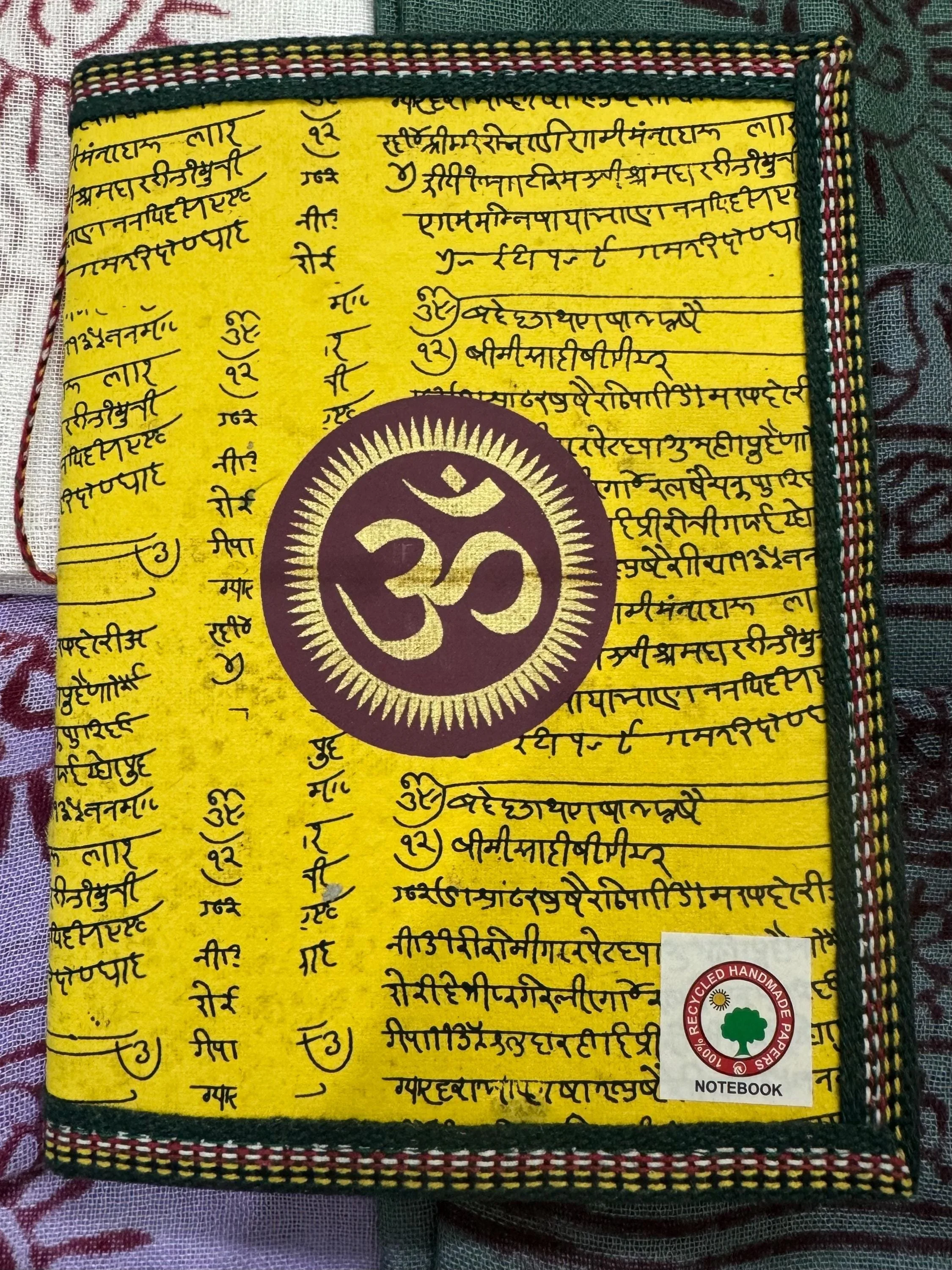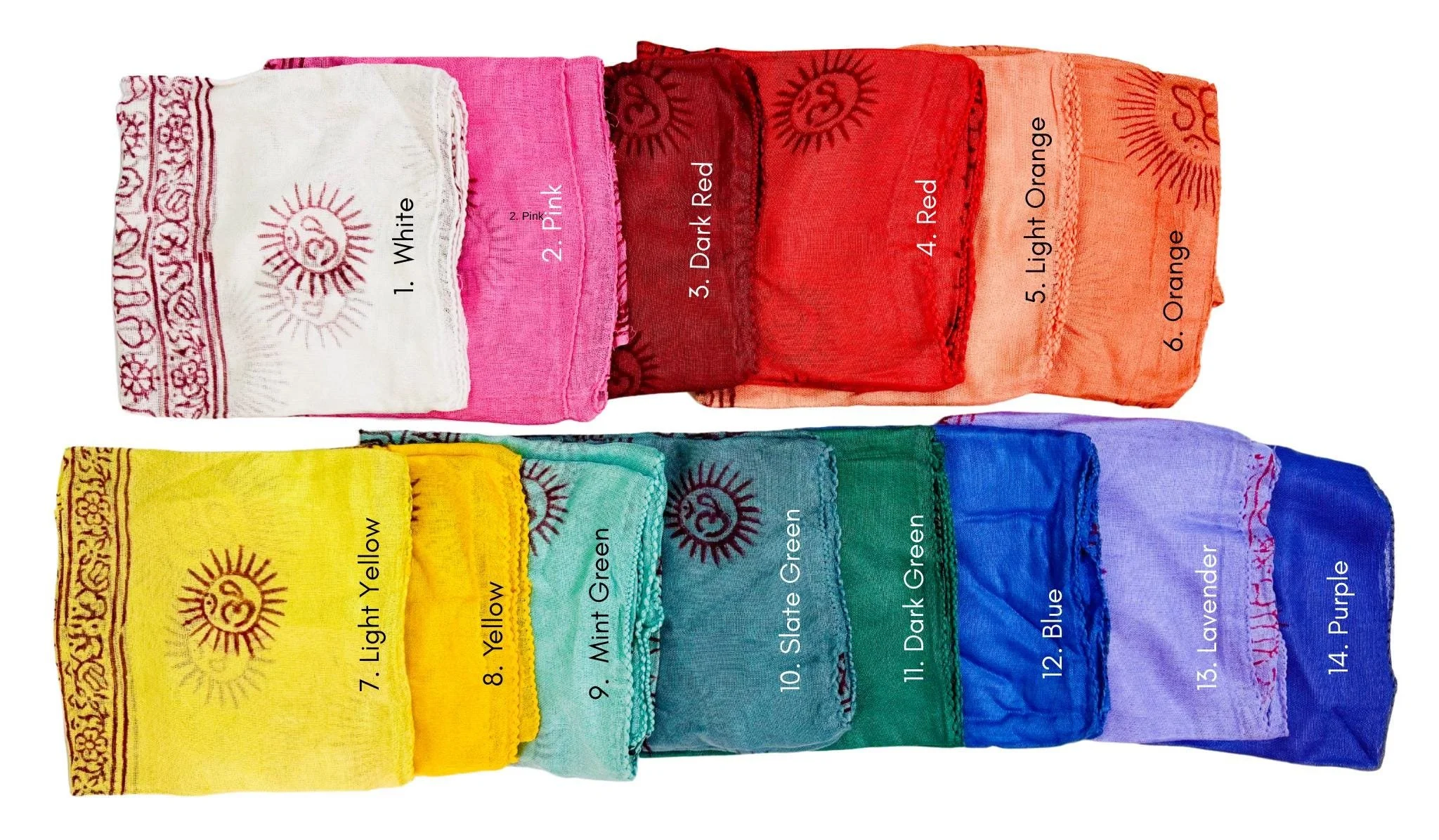 Om Shawl: Lightweight Cotton, Sacred Symbol Block Print, Bright Colors.