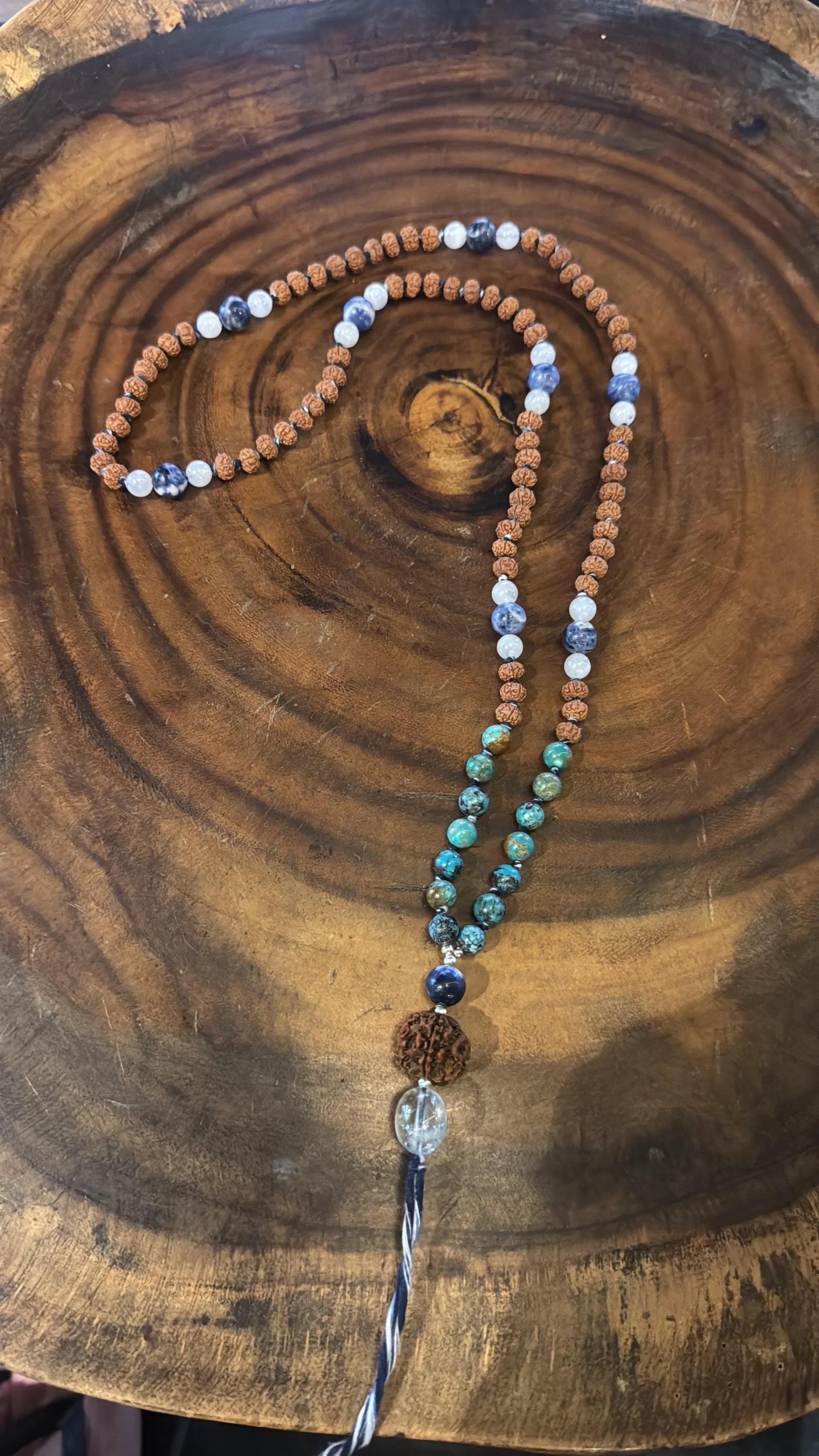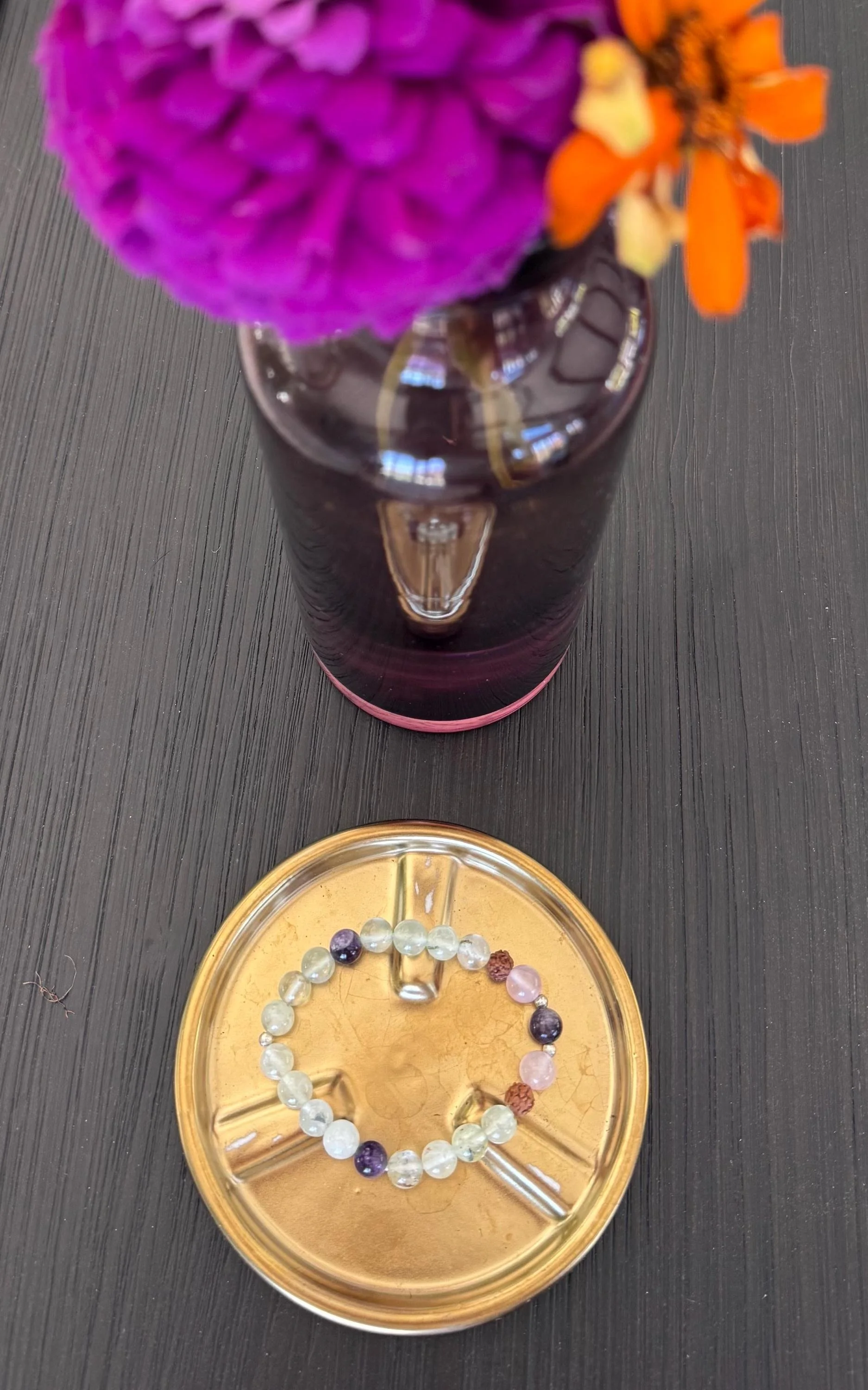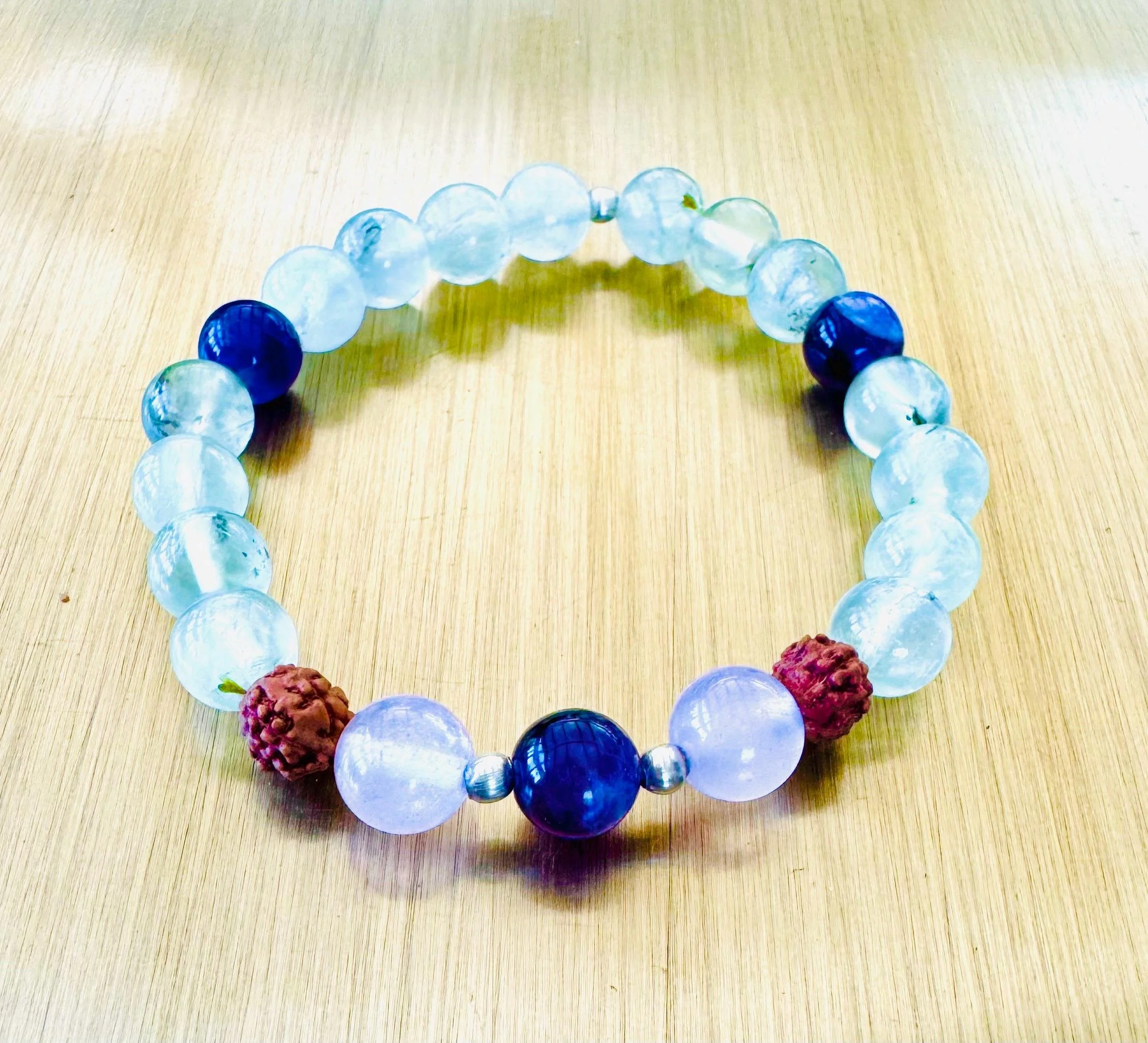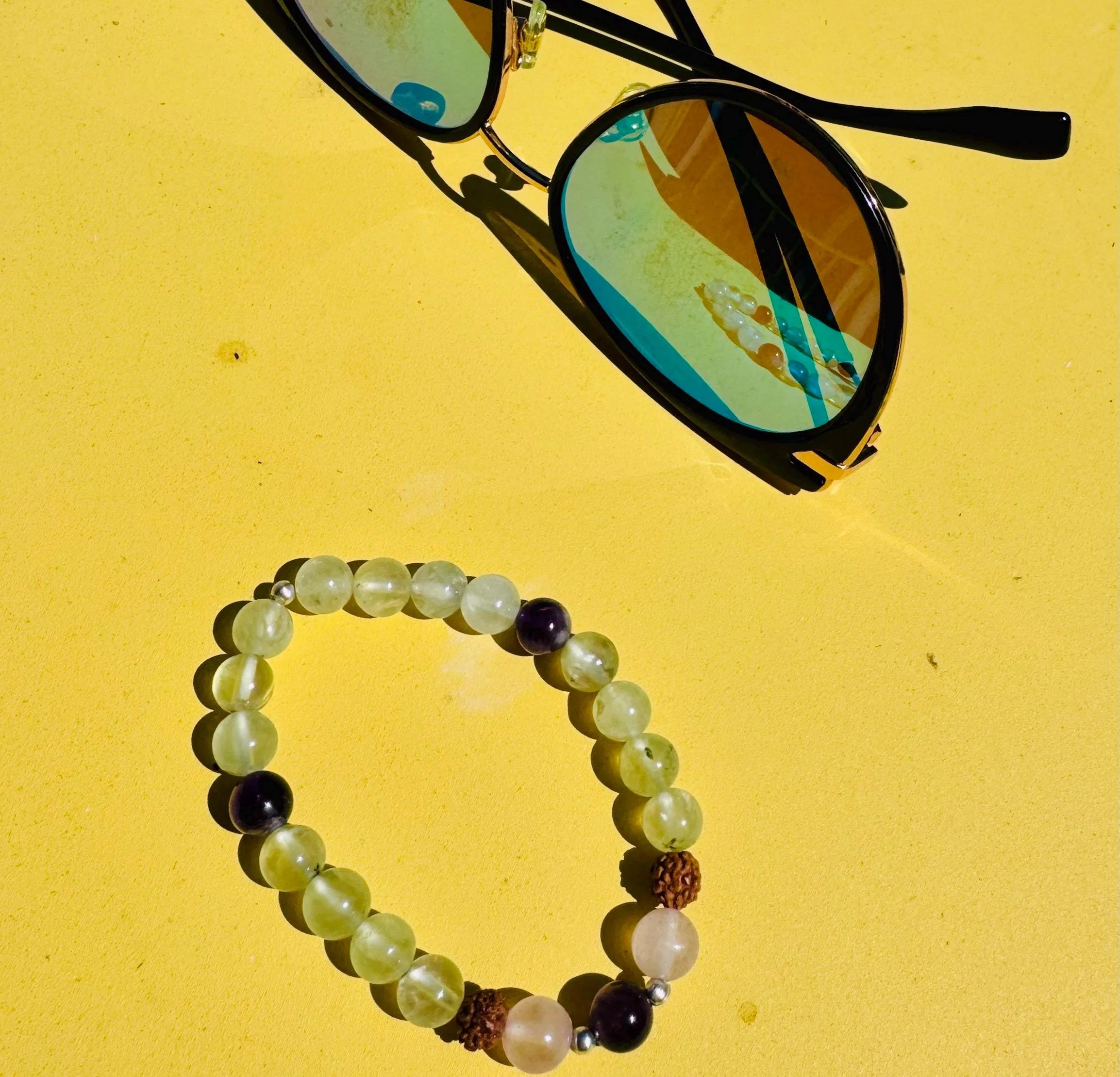 Prehnite, Rudraksha, Amethyst & Rose Quartz Healing Intuition and Love Bracelet