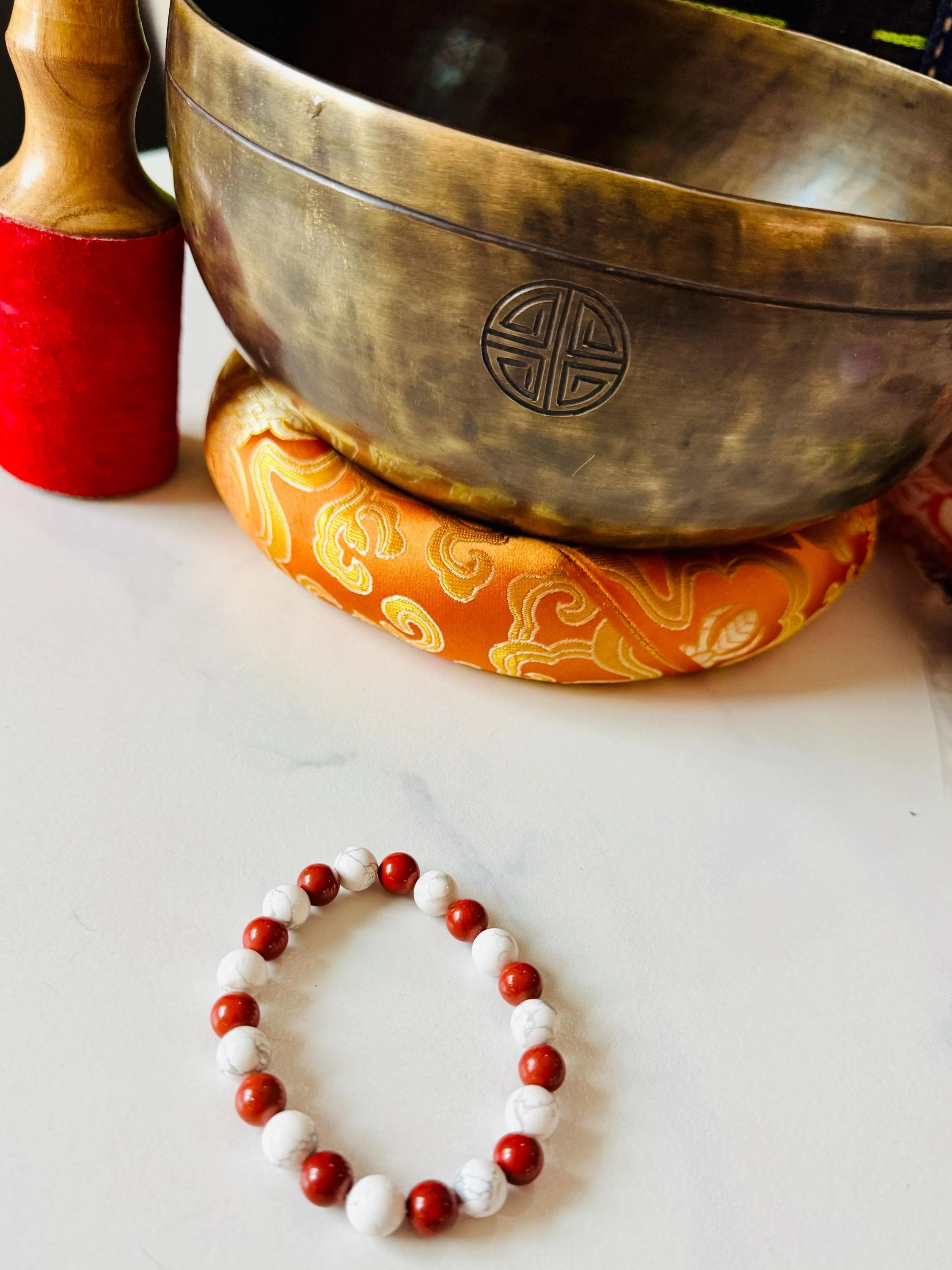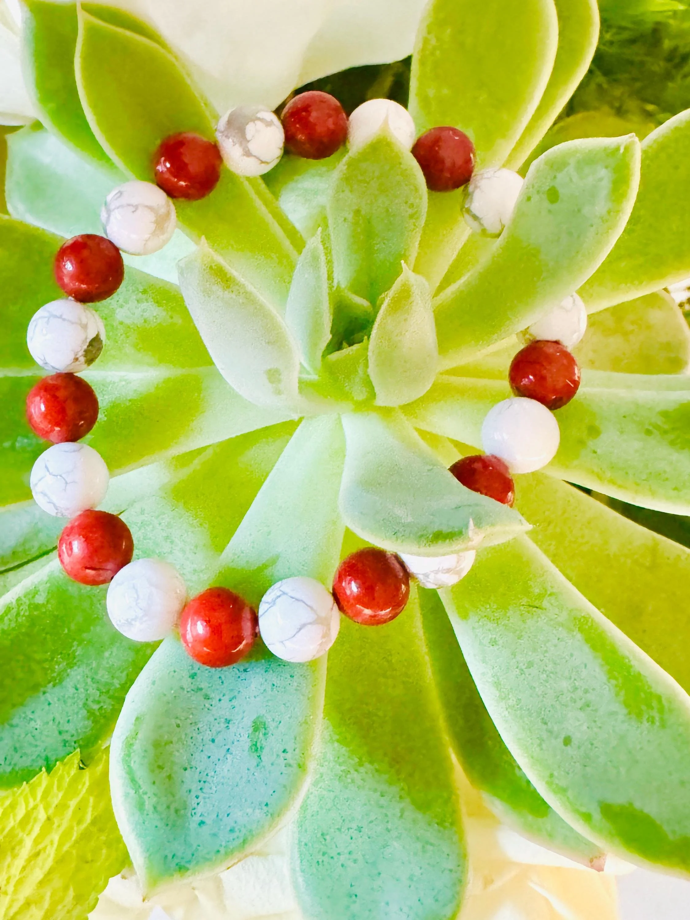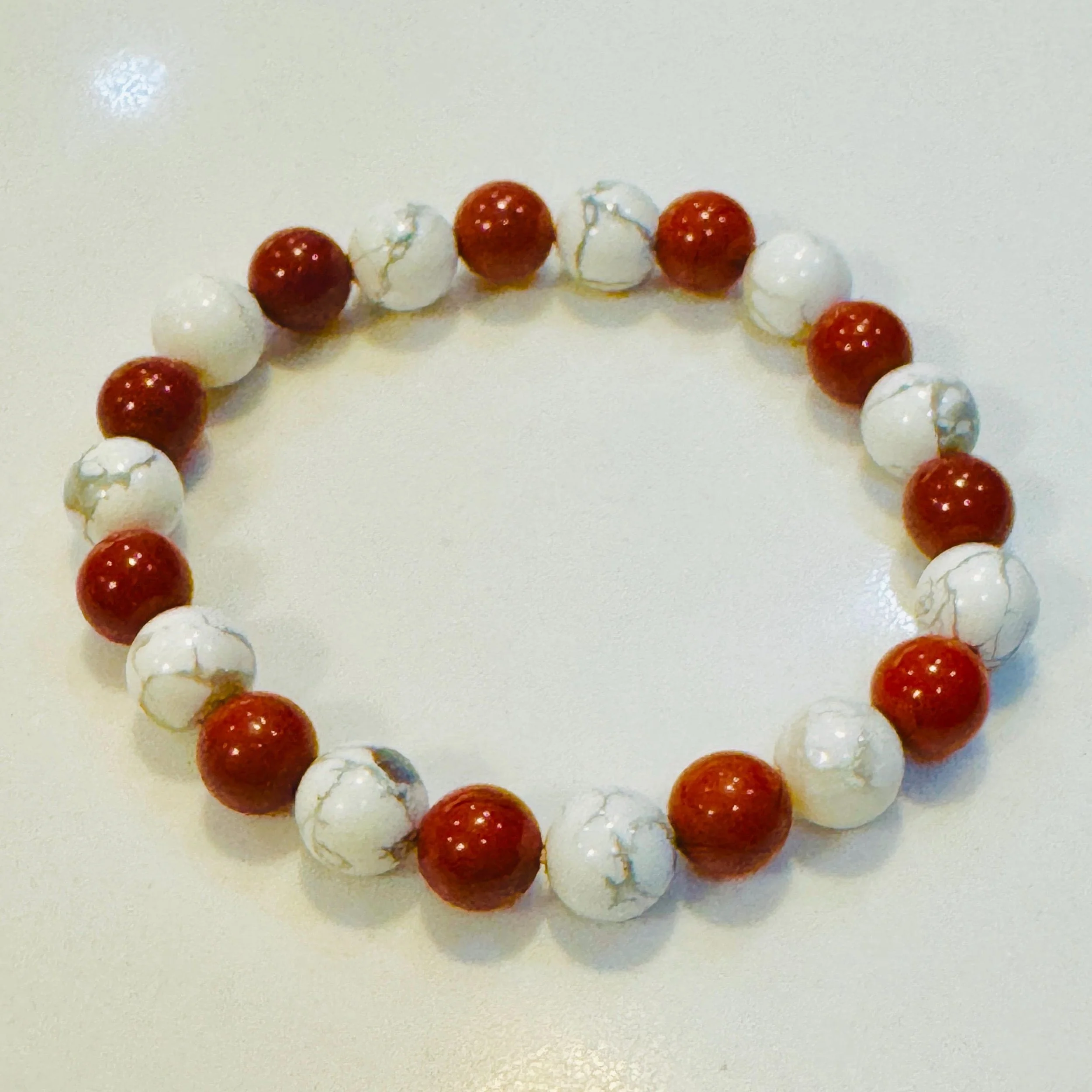Root + Crown #11 - Howlite & Red Jasper Bracelet – Genuine Gemstone Energy Bracelet