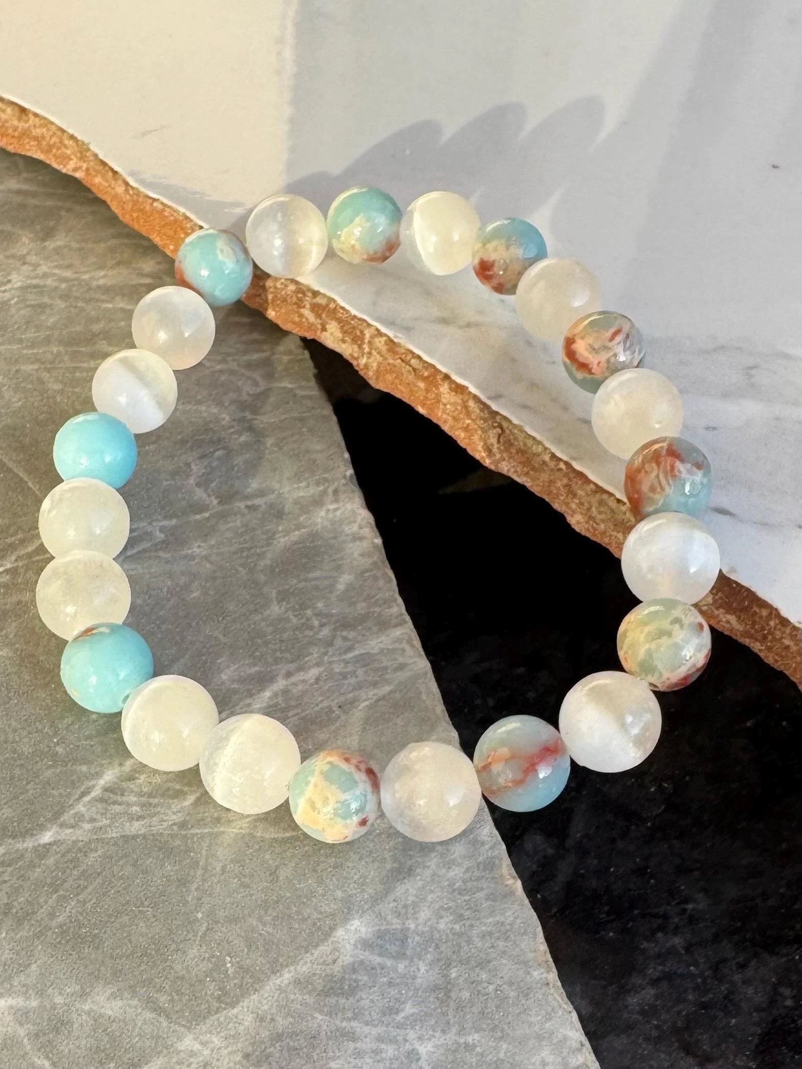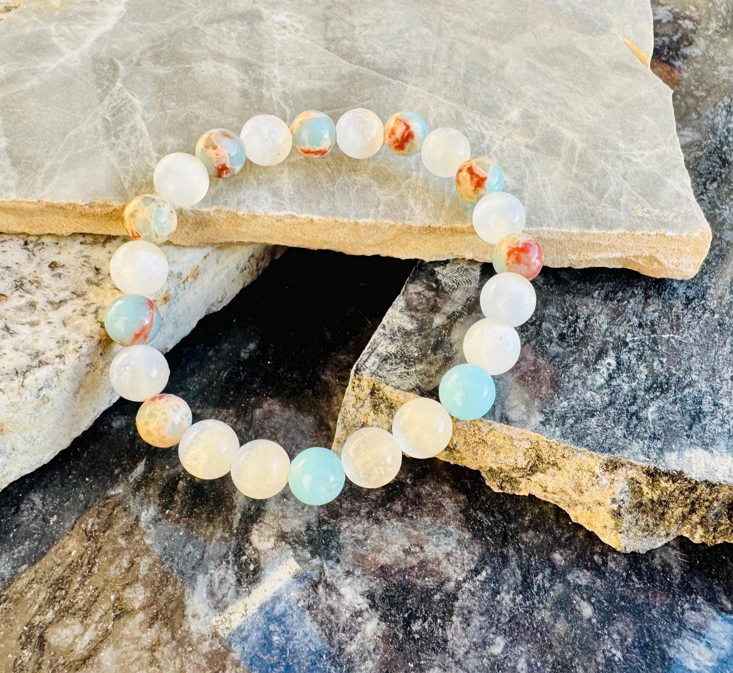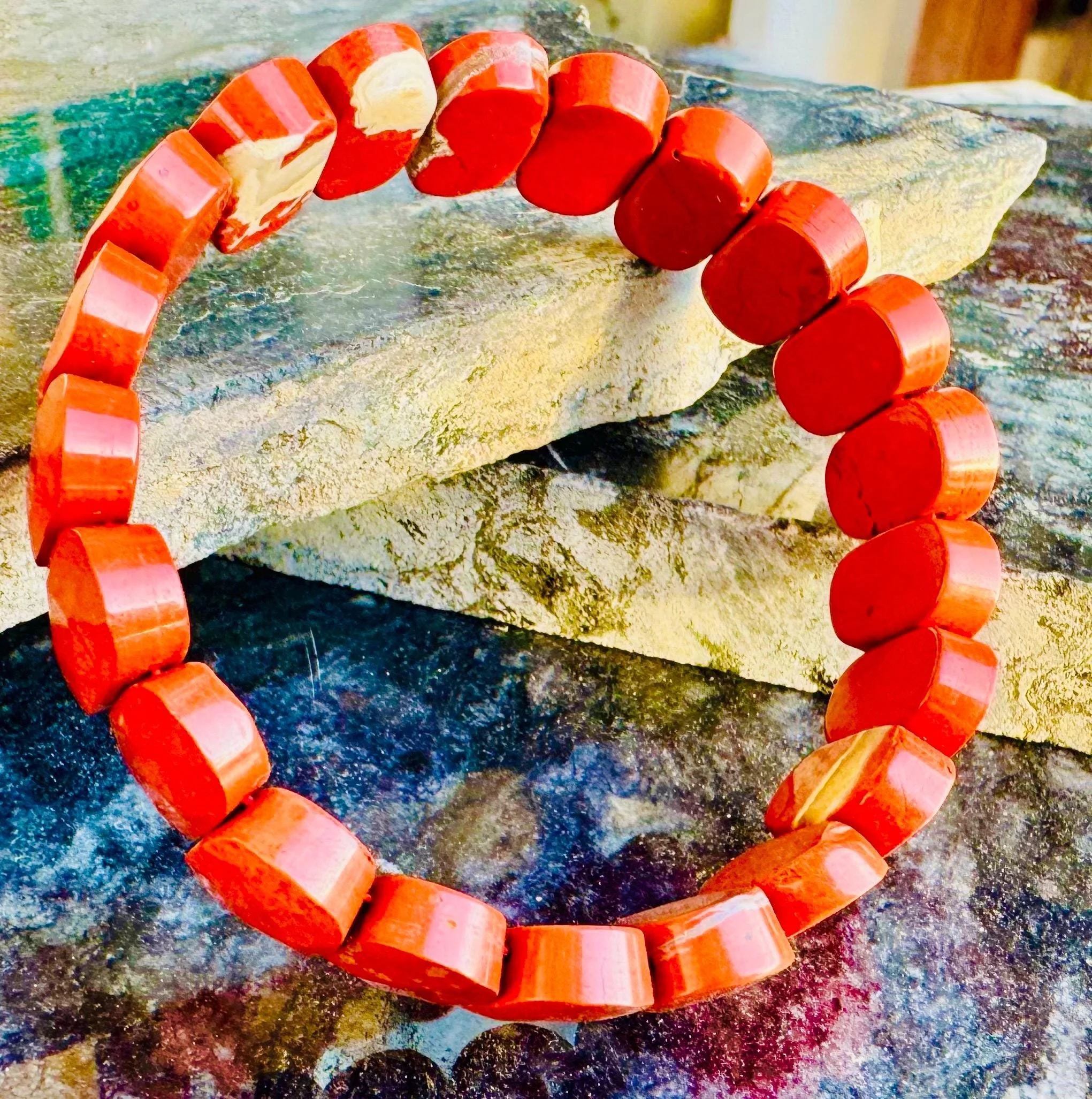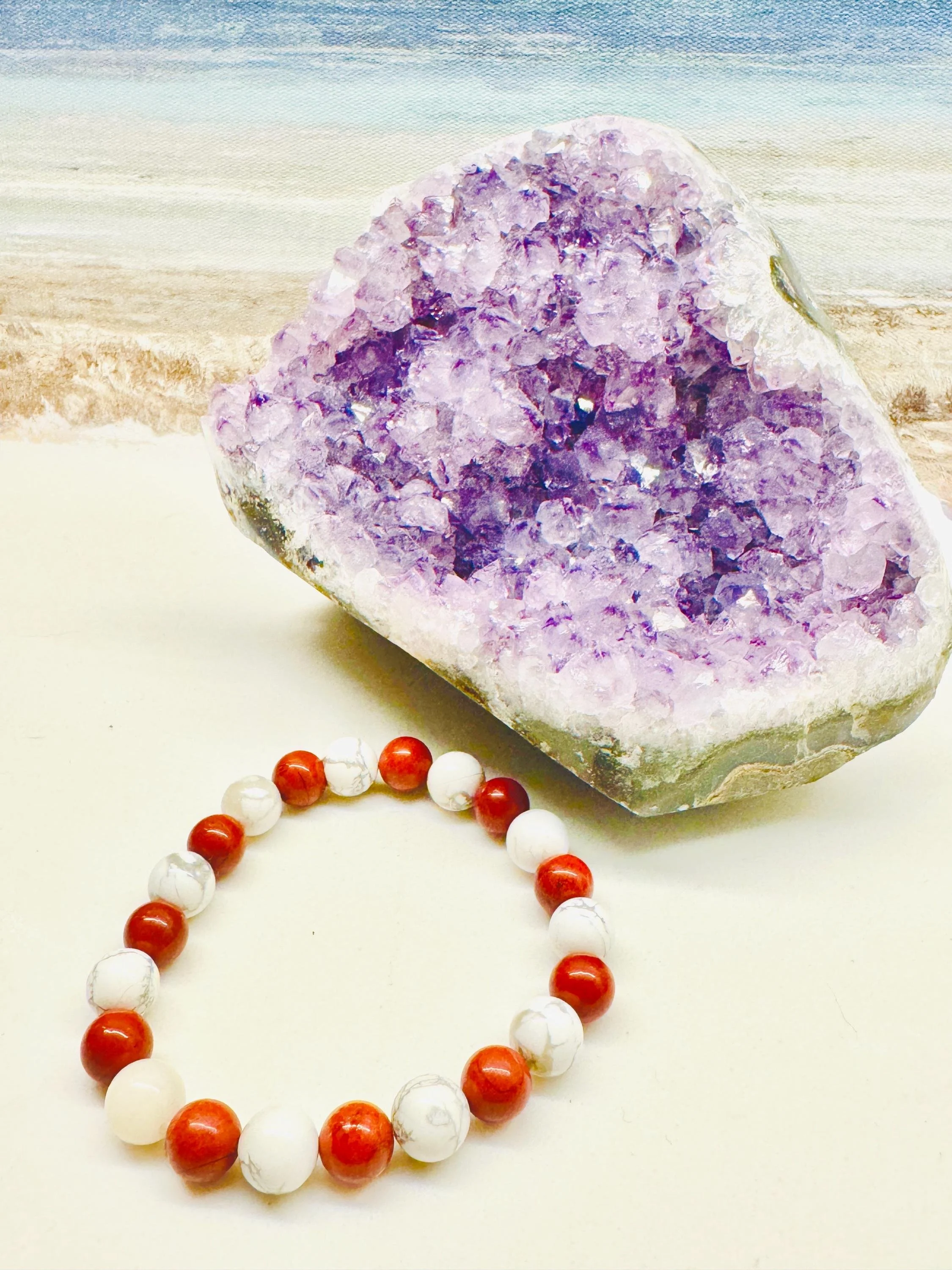 Root + Crown #11 - Howlite & Red Jasper Bracelet – Genuine Gemstone Energy Bracelet