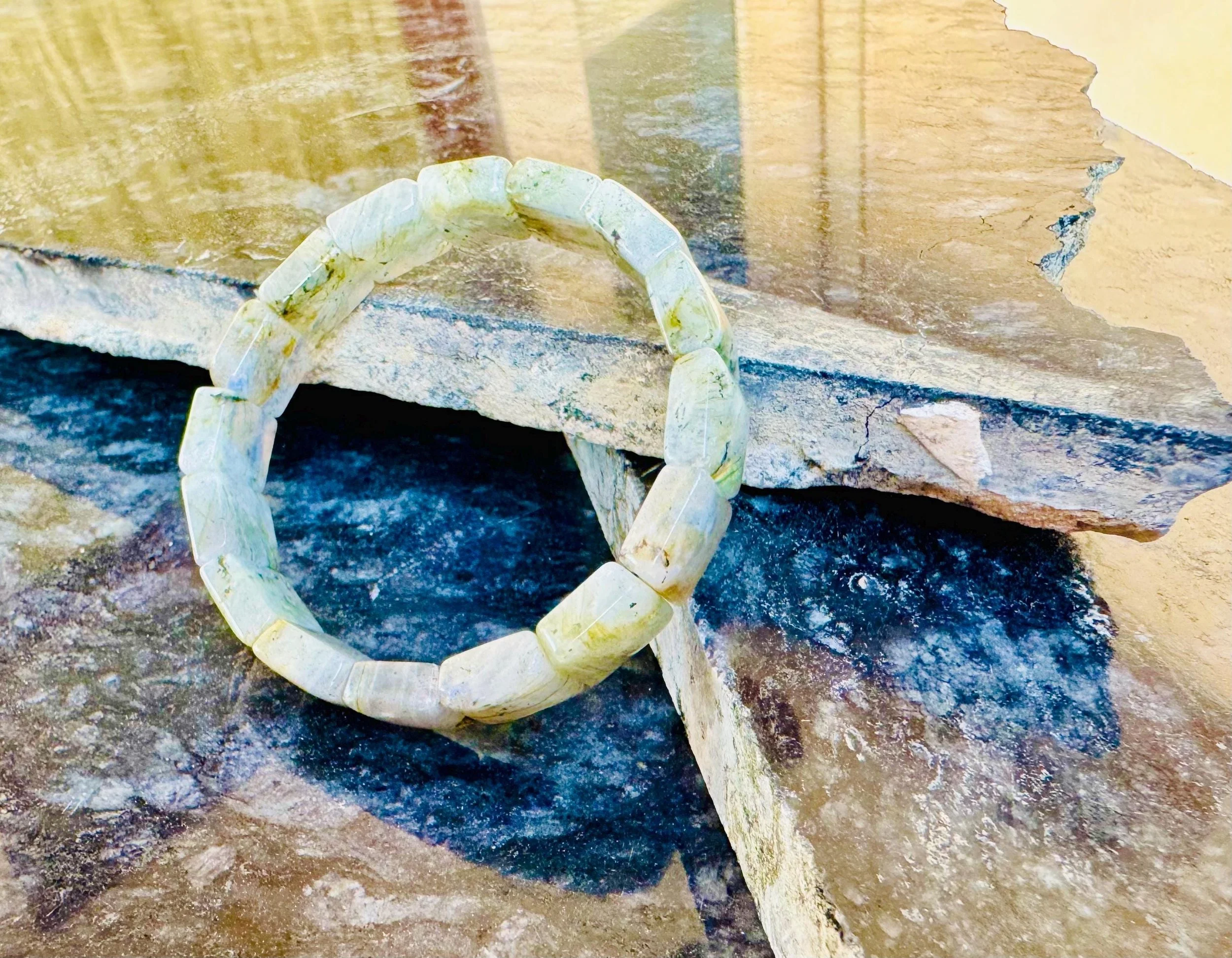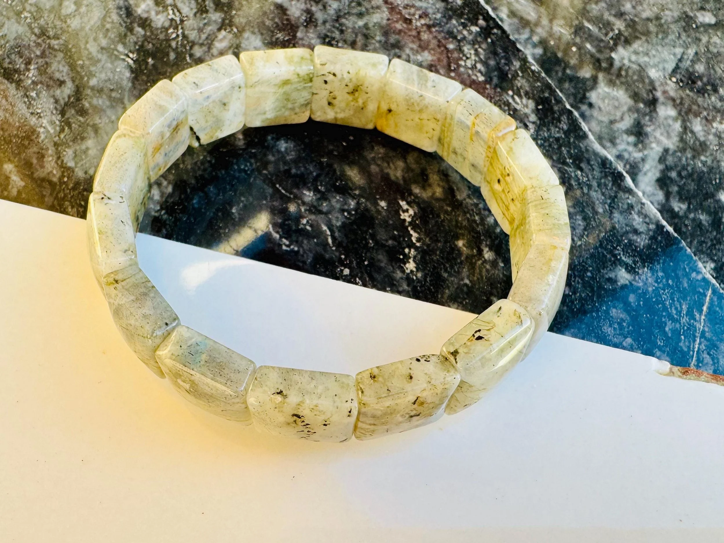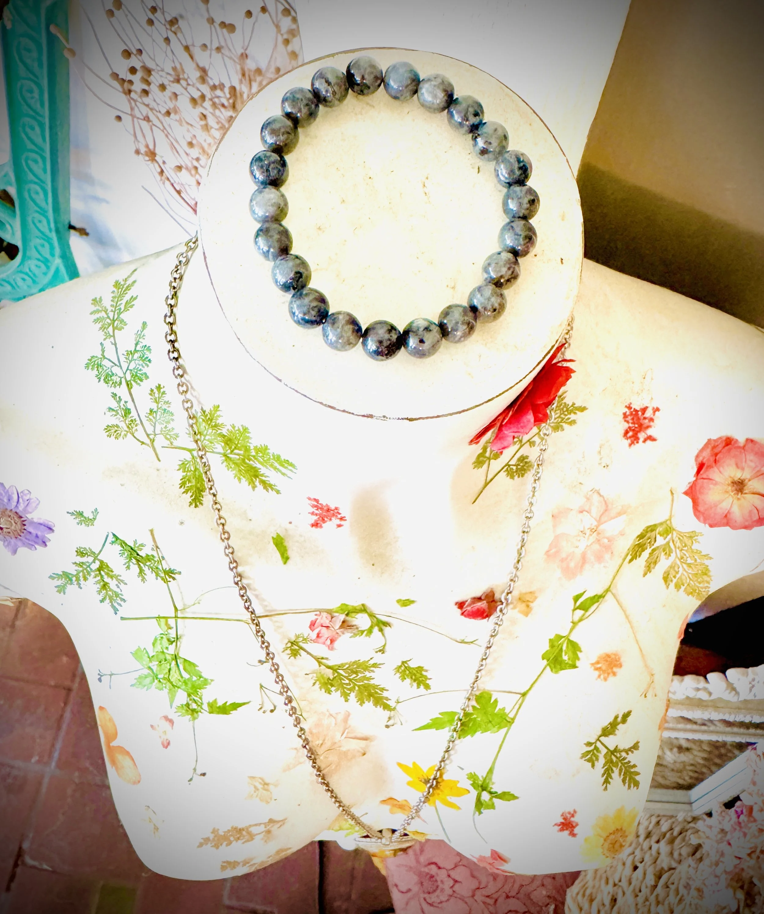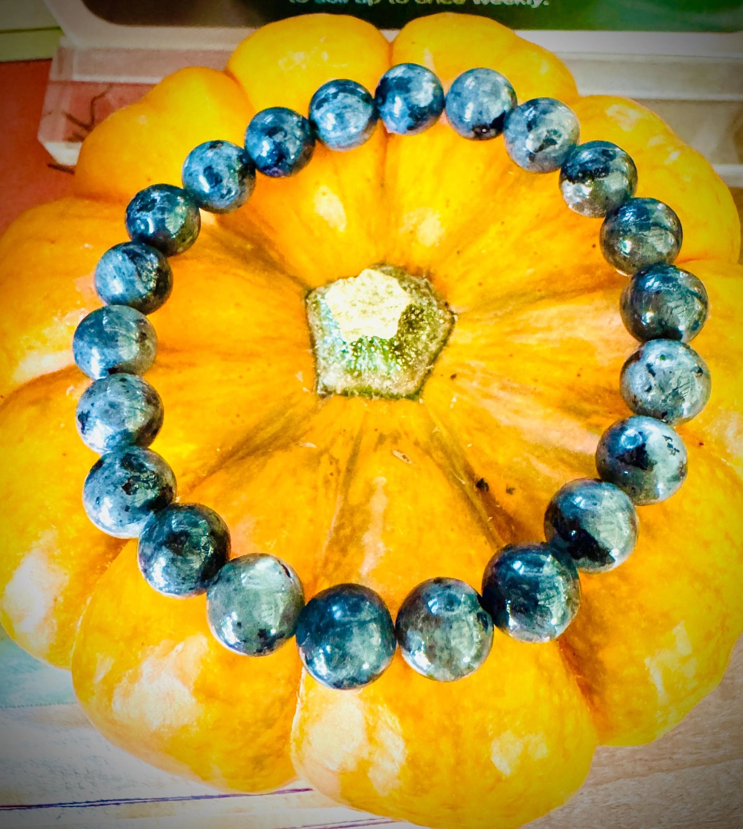 Luminescent Larvikite Bracelet | “Norwegian Moonstone” Protection Beads | Grounding & Intuition Crystal Jewelry