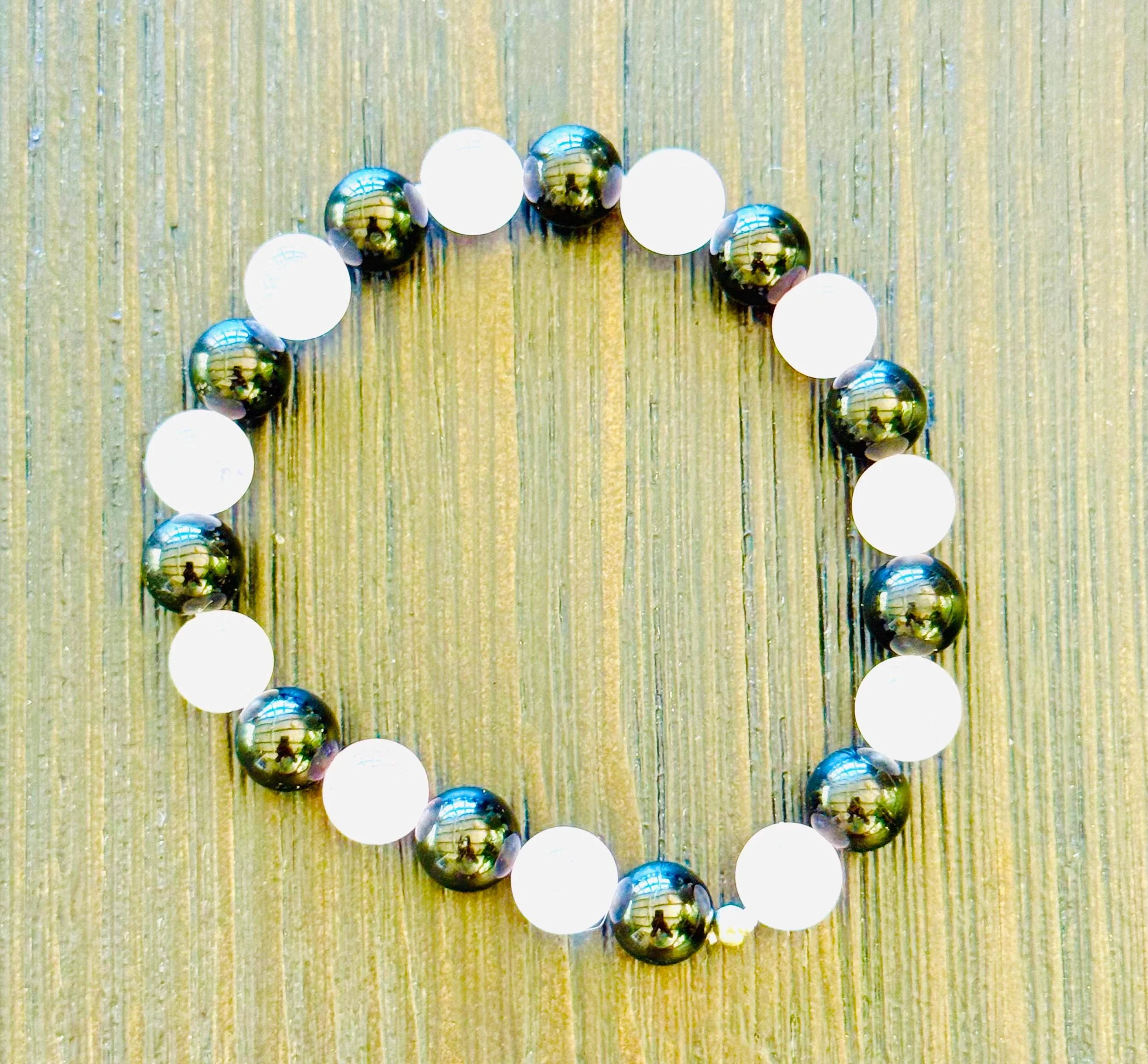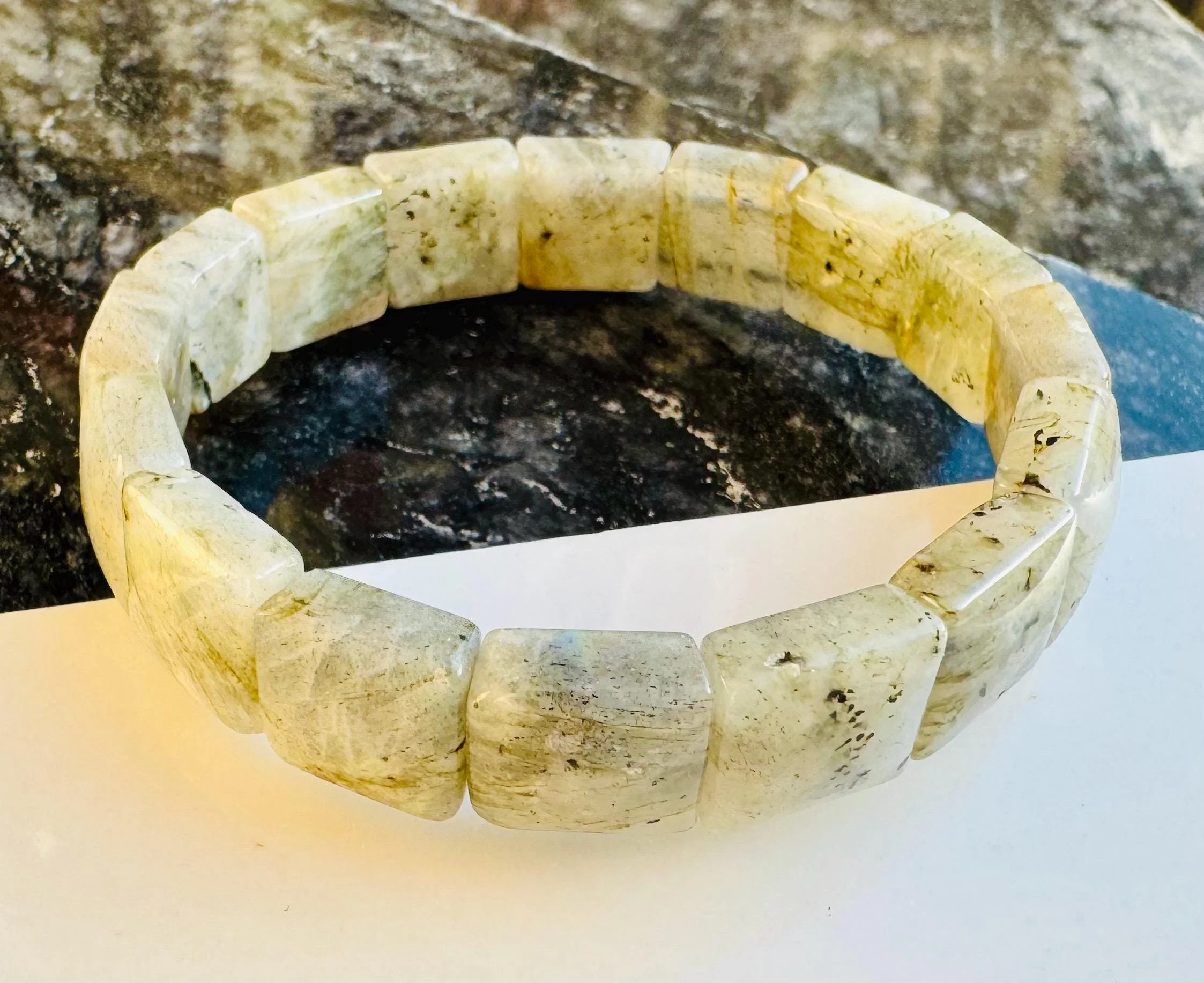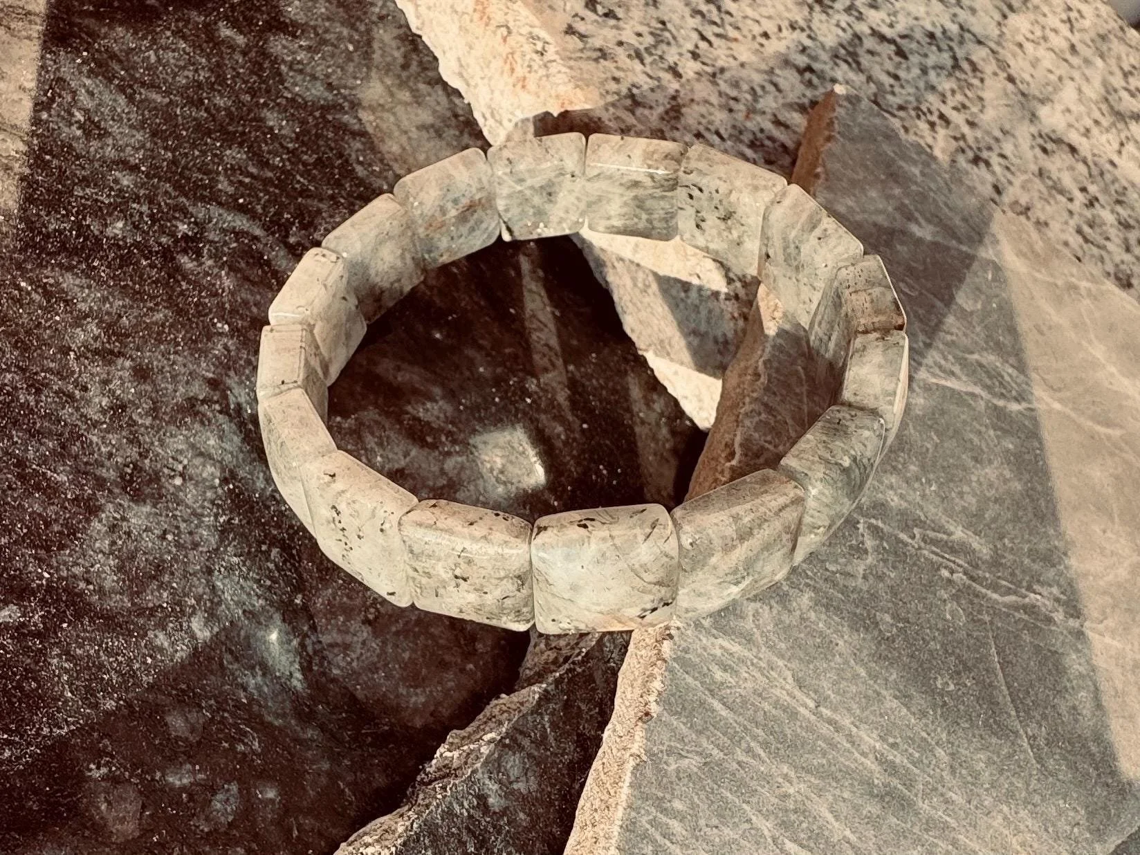 Luminescent Larvikite Bracelet | “Norwegian Moonstone” Protection Beads | Grounding & Intuition Crystal Jewelry