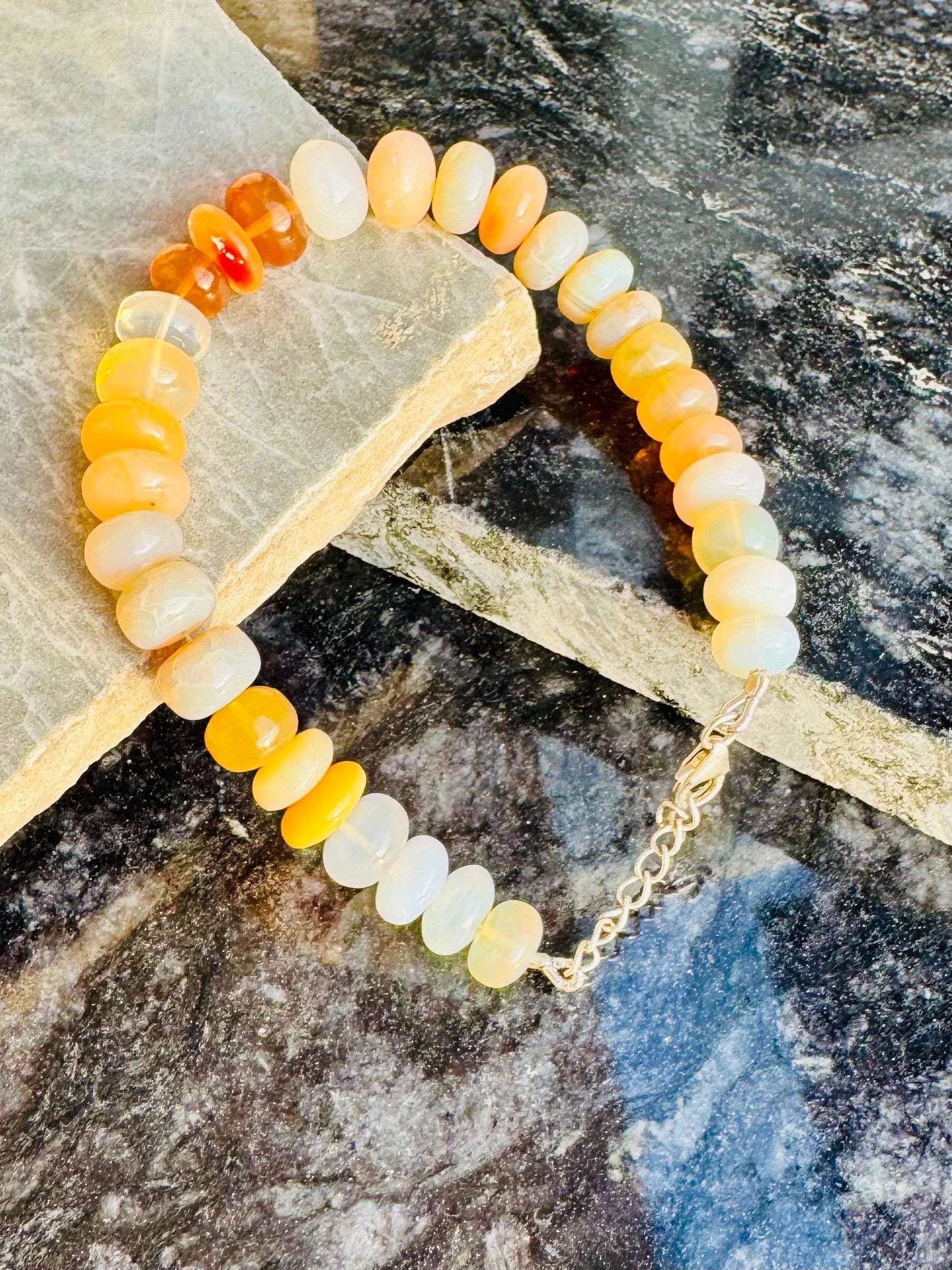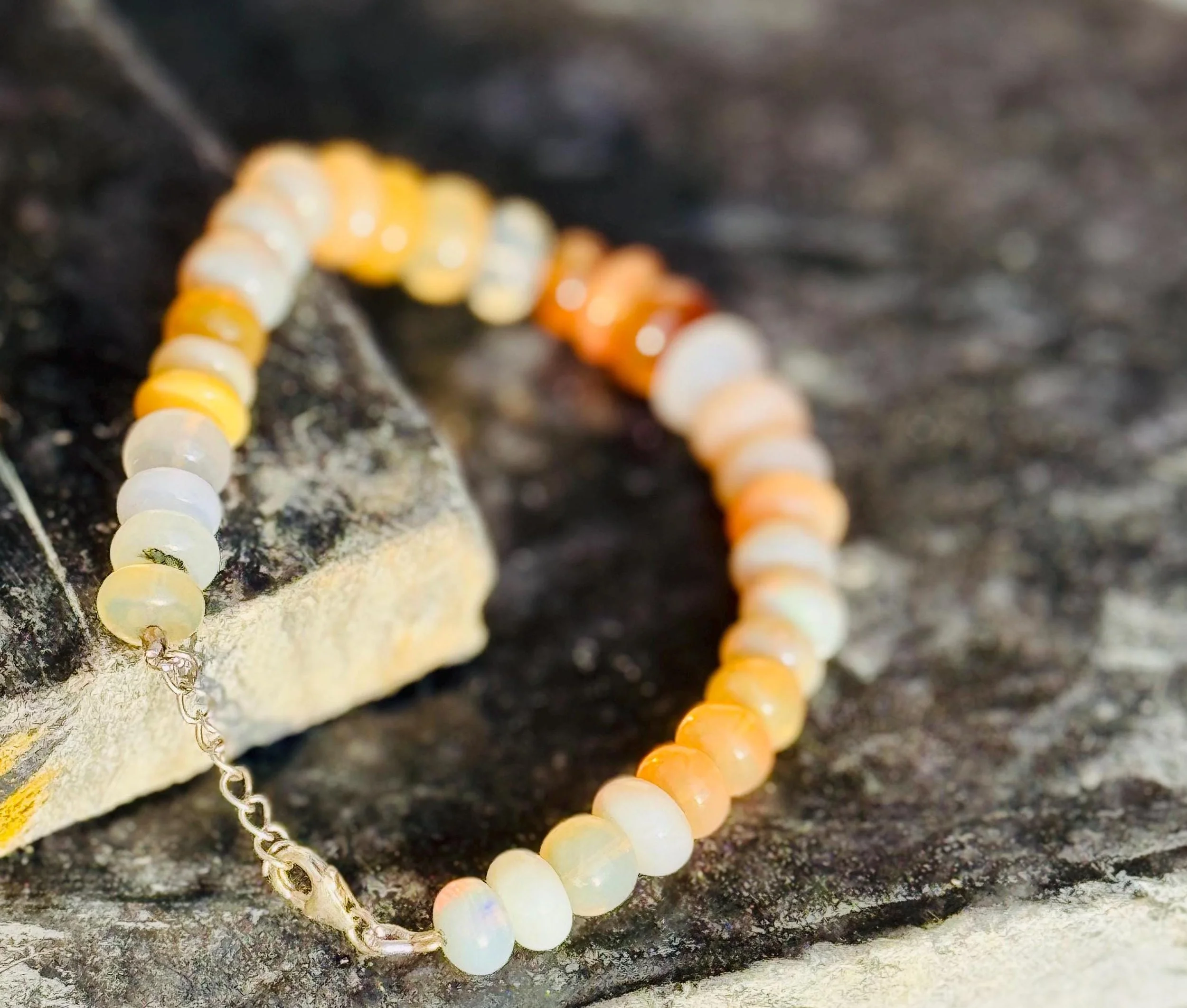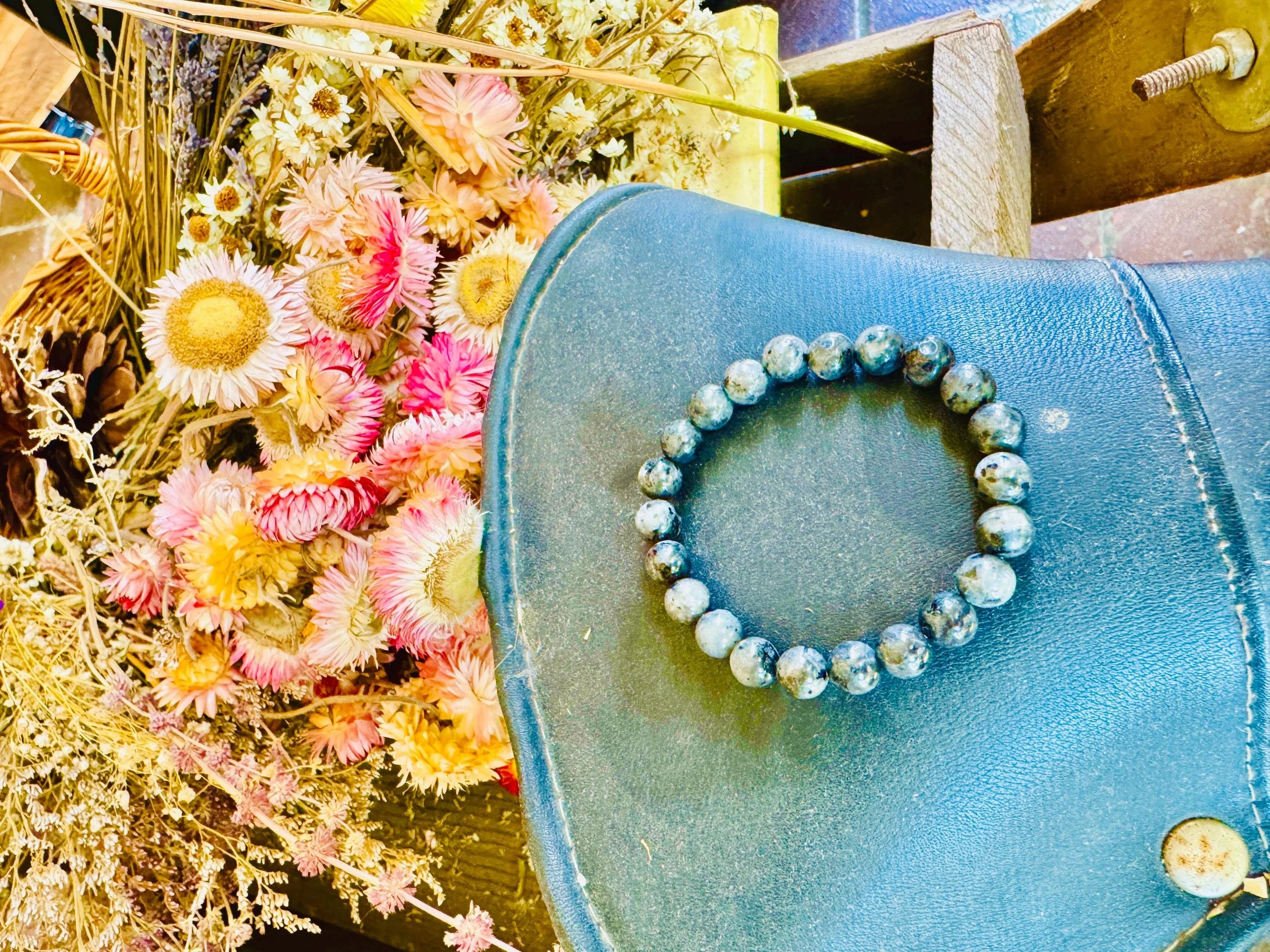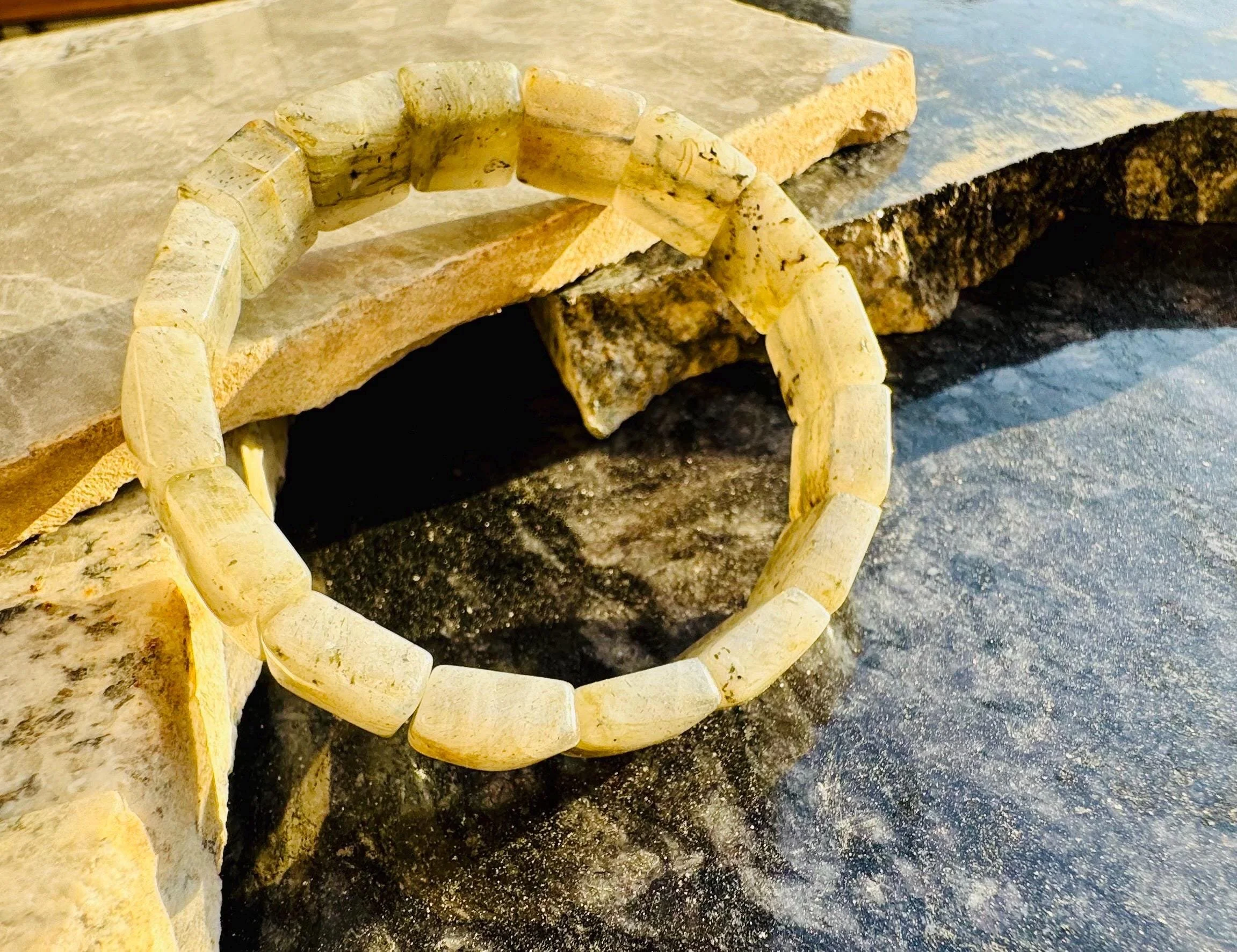 Luminescent Larvikite Bracelet | “Norwegian Moonstone” Protection Beads | Grounding & Intuition Crystal Jewelry
