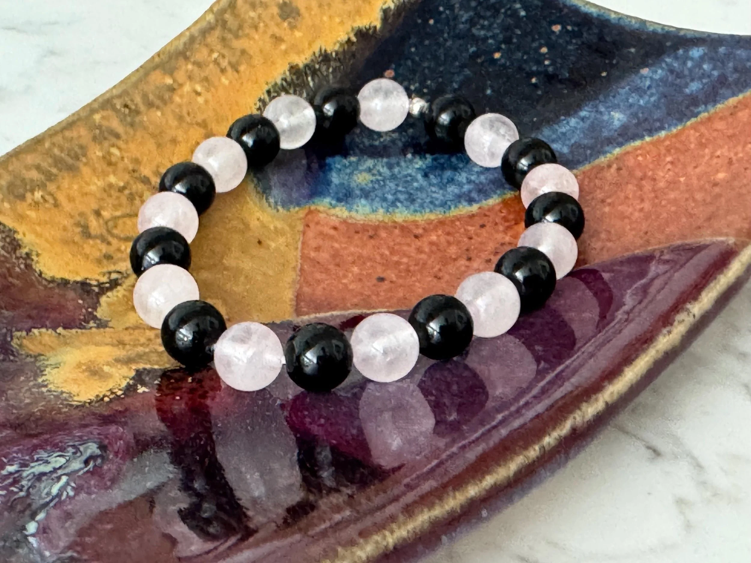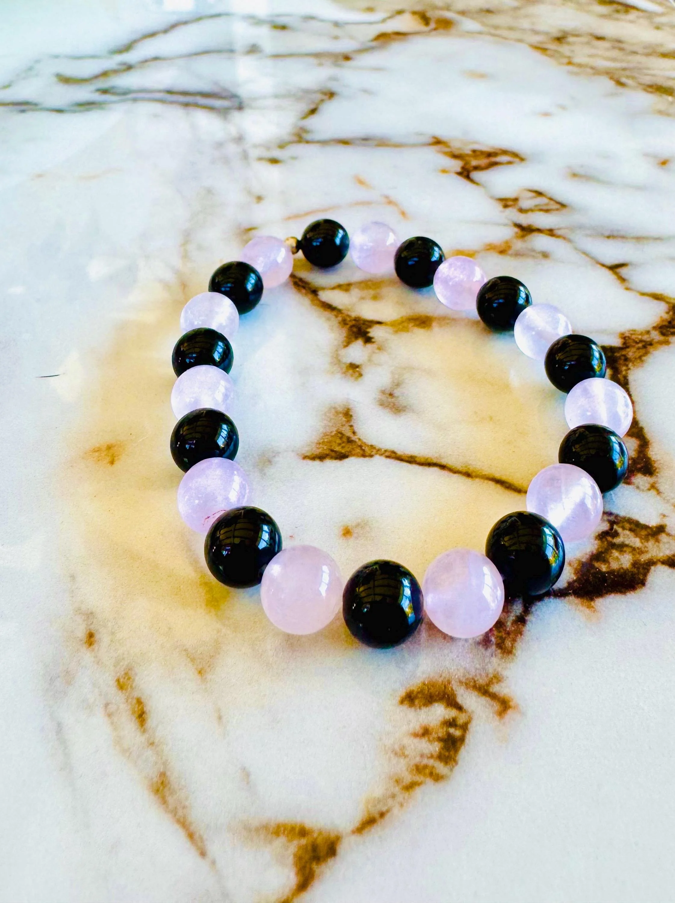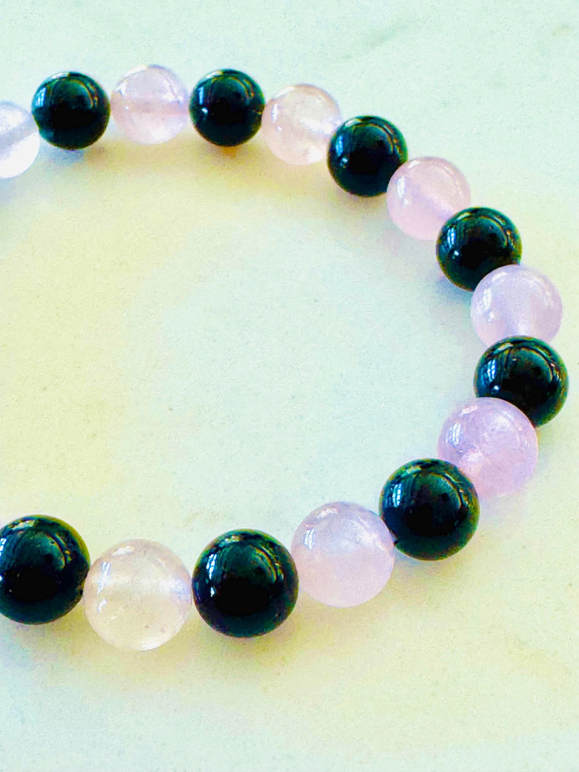Root + Heart #1 - Black Tourmaline + Rose Quartz Bracelet: Protection and Healing Crystal Jewelry